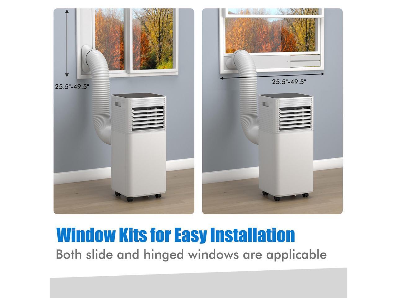 - 3 in 1 Design & Quick Installation: In addition to cooling your room, this air cooler can also serve as a fan and dehumidifier . The window kit allows you to attach the exhaust hose to any vertical or horizontal sliding windows and the suitable window size is 25.5''-49.5''.