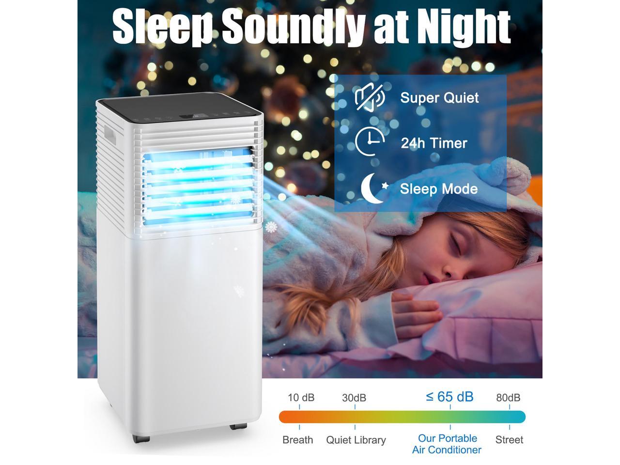- Sleep Mode & 1-24H Timer: In sleep mode, this air conditioner runs quietly (65dB) and the temperature will increase by 1 ° C /33.8 ° F every hour. 1-24 hour timing function allows you to set the auto-off time .