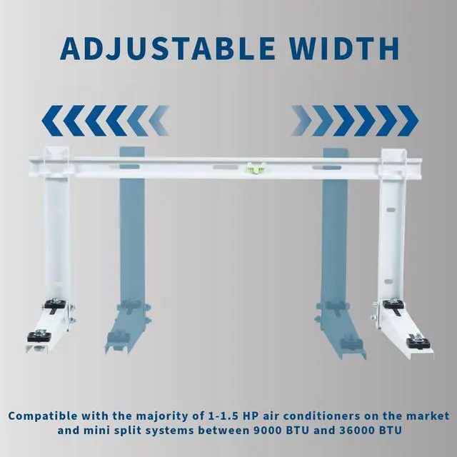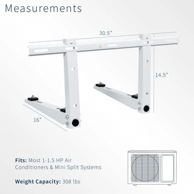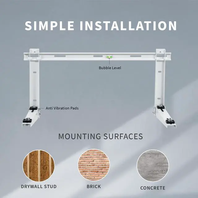 Raise and protect your air conditioner with the Mini Split Air Conditioner Wall Mount (MOUNT-MSAC1) from VIVO! This sturdy steel mount fits the majority of 1-1.5 HP air conditioners on the market and mini split systems between 9000 BTU and 36000 BTU. Mounting your mini split will protect it from the outdoor elements that it would have been exposed to on the ground, such as dirt, grass clippings, and snow. The L-shaped brackets come equipped with anti-vibration pads to minimize noise from your unit, and an embedded bubble level helps ensure perfect positioning.