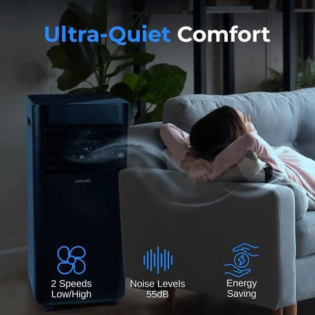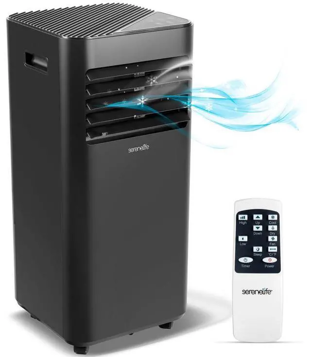The SereneLife SLPAC19B Portable Air Conditioner delivers efficient cooling with 10, 000 BTU (ASHRAE), making it perfect for bedrooms, offices, and small living spaces up to 320 square feet. This 3-in-1 cooling system functions as an air conditioner, dehumidifier, and fan, ensuring a comfortable indoor environment.