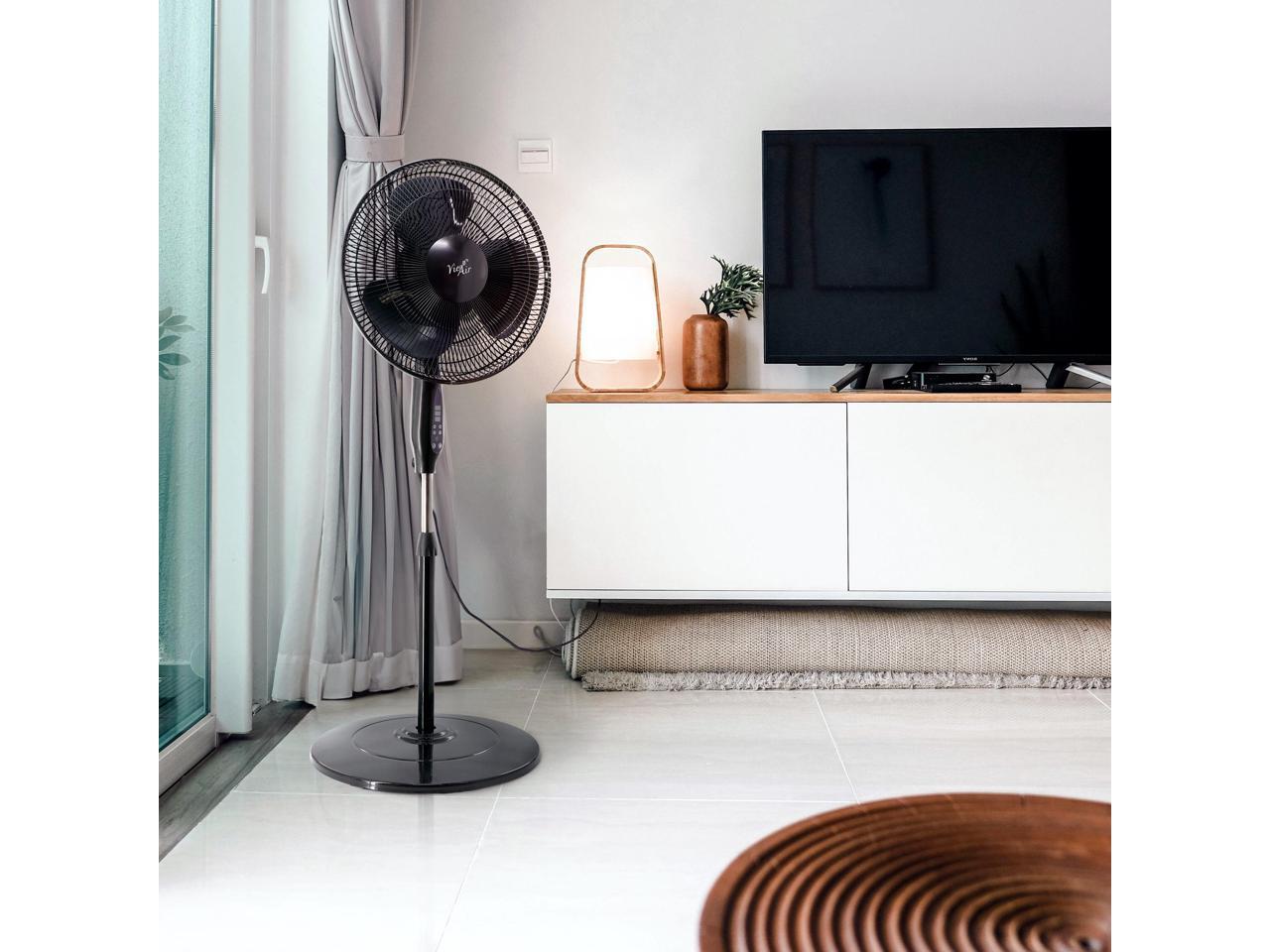 Vie Air 16 Inch 3 Speed Oscillating Stand Fan with Remote Control in Black
