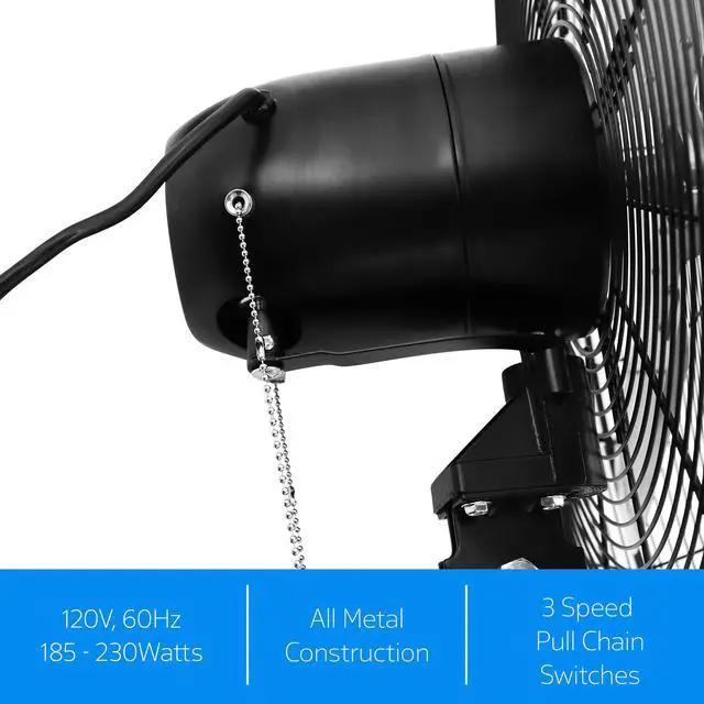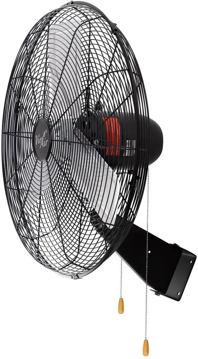 The Vie Air 24 Inch Tilting Wall Mountable Heavy Duty Commercial Strength Oscillating Fan with 3 Speed Motor in Black is both reliable and easy to operate so that you can spend more time enjoying the fresh air and less time setting up for it. With powerful air flow this fan does a great job of cooling down specific areas. This Fan features 2 variable settings so that you can control the speed and intensity of the air flow in your space. The oscillation feature comes in handy in any room that can use some air flow! Maximize your fans efficiency with oscillation! In addition, this fan features a tilting head, which greatly improves the fans ability to freshen a room, and will be a satisfying feature for anyone in a gym or workout space.