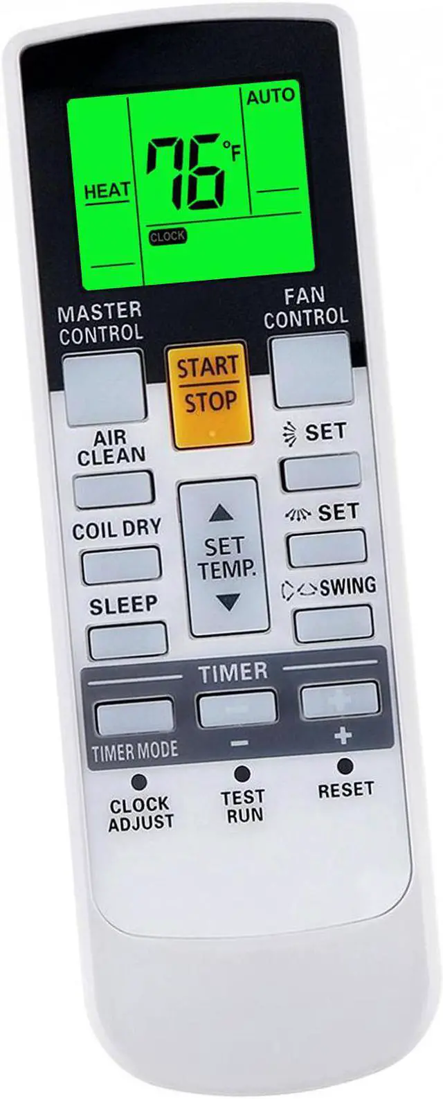 1. Display in Both Fahrenheit and Celsius. 2. Green Backlight, It's very easy and convenient to Operate the remote control at night. 3. Please check your old remote control model number or AC model before ordering it. 4. Maybe this remote control looks different from your old remote control, but it is an updated one can work with your AC. 5.