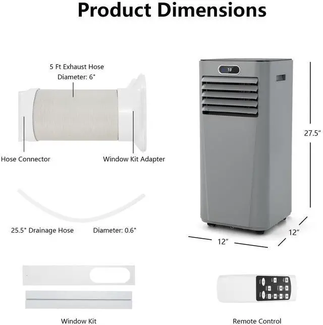 | Included Components | Remote Control, Exhaust Hose, Drainage Hose, Window Kit |
