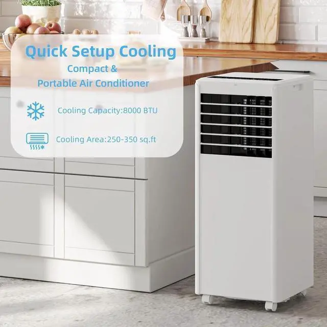 Efficient Cooling for Medium Rooms: This 8000 BTUs portable air conditioner is designed to provide powerful and efficient cooling for rooms up to 350 square feet. With an ASHRAE cooling capacity of 8000 BTU, it ensures your space stays cool and comfortable, making it ideal for bedrooms, living rooms, and small offices. Whether you're looking to cool down a cozy bedroom or a compact workspace, this unit delivers the perfect amount of cooling power without taking up too much space.