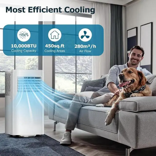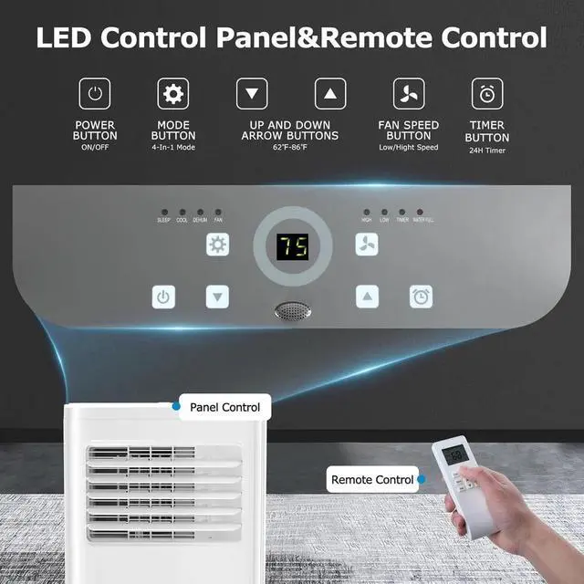 Efficient refrigeration:This air conditioner uses a high-efficiency compressor, 10000BTU high-efficiency refrigeration, can cool down 450 square feet of space, can be cooled in 6 minutes, the temperature can be adjusted from 62°F -86°F, and the LED display allows you to better adjust.