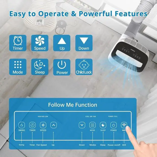 Take control of your comfort with our Portable Air Conditioner featuring an LED display and remote control. The bright, easy-to-read the front LED display keeps you informed about temperature and mode, while the included remote control allows you to adjust everything from across the room. Whether you're cooling, dehumidifying, or using the fan mode, managing your environment has never been easier.