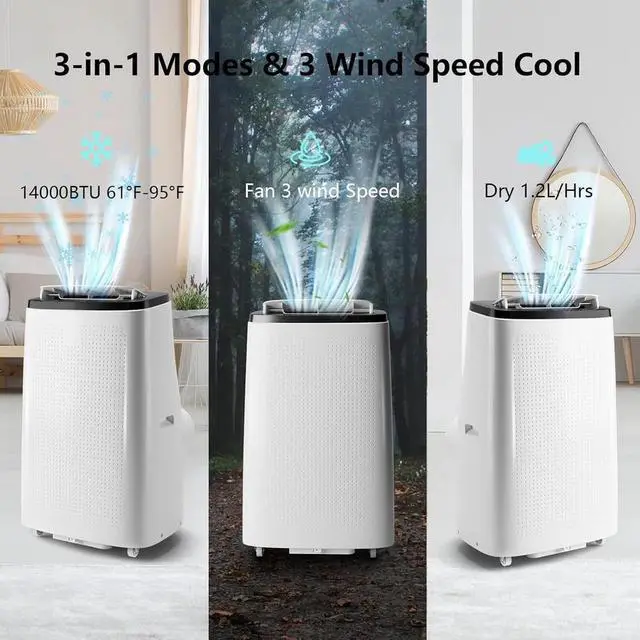 Beat the heat and stay comfortable all summer long with the 14000 BTU Portable Air Conditioner. This versatile 3-in-1 unit combines powerful cooling, efficient dehumidifying, and a fan mode to meet all your needs. Whether you're battling the scorching heat or reducing humidity, our portable air conditioner is perfect for rooms, dormitories, and offices up to 700 square feet.