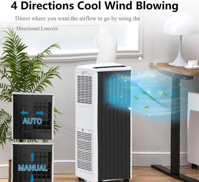 ADJUSTABLE AIRFLOW DIRECTIONS: Portable air conditioner directs cool air UP, DOWN, LEFT, or RIGHT. Use manual or auto swing modes to blast cold air exactly where you need it