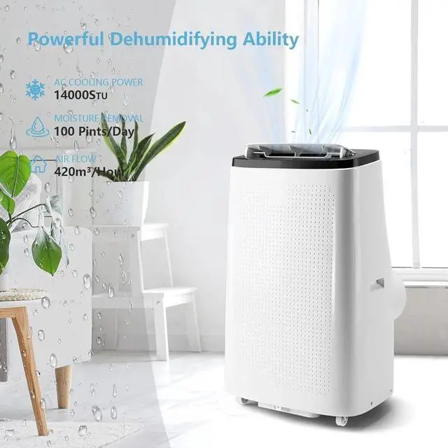 Acekool 14,000 BTU portable air conditioner has included two easy-to-install window venting kits. It's compact design lets you easily move the portable A/C around via 4 built-in stainless steel castor wheels and handles