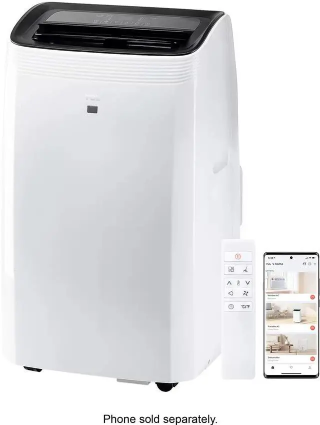 Stay cool the smart way with the powerful cooling capacity of the TCL 10,000 SACC (14,000 BTU ASHRAE) Smart Portable Air Conditioner featuring AC, Fan, and Dehumidifier modes. The fan circulates air while the AC helps you easily adjust and manage temperatures in rooms up to 450 sq. ft. Additionally, the dehumidifier function helps to reduce moisture in your home. The user-friendly Mobile app lets you control your unit from anywhere, change the temperature, set schedules, and more. You can use simple voice commands to control your portable AC when paired with Alexa or Google Assistant-enabled devices. The washable and reusable filter helps protect your portable AC's life while reducing large airborne particles like dust and pet hair. Setup is made easy with the included installation kit and guided in-app instructions that will have your unit up and running in minutes. The two handles and four wheels make this portable air conditioner easy to glide from room to room, keeping you cool in any room with a vertical or horizontal sliding window.