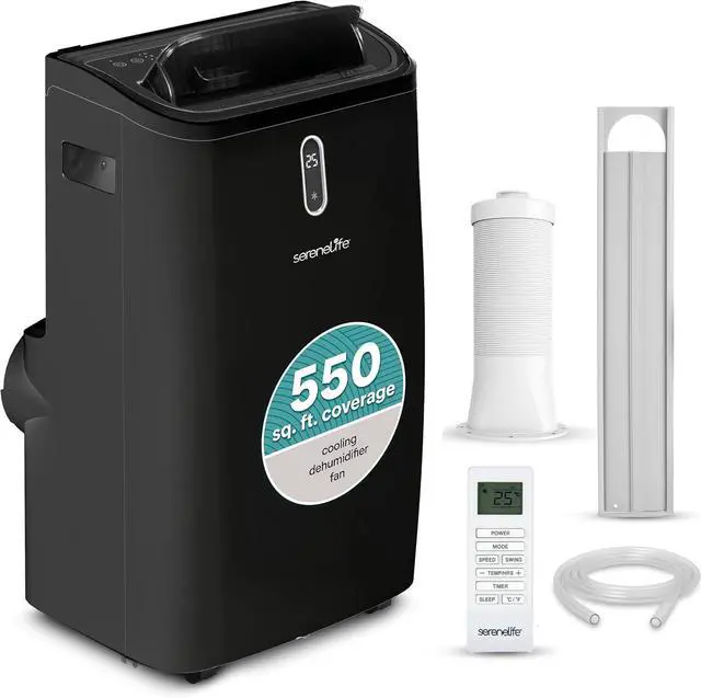 SereneLife Portable Air Conditioner, 12000 BTU Capacity (ASHRAE) Compact Home A/C Cooling Unit with Dehumidifier and Fan Modes, 380 Sq. Ft. Coverage, Includes Window Mount Kit (Black)
