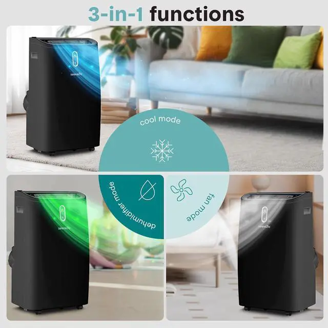 MULTI-MODE FUNCTIONALITY: Cool air blows upward for fast, even room temperature reduction. Choose from three operation modesAC cooling, dehumidifier, or fanand adjust timer, temperature, and fan speed to suit your comfort needs.