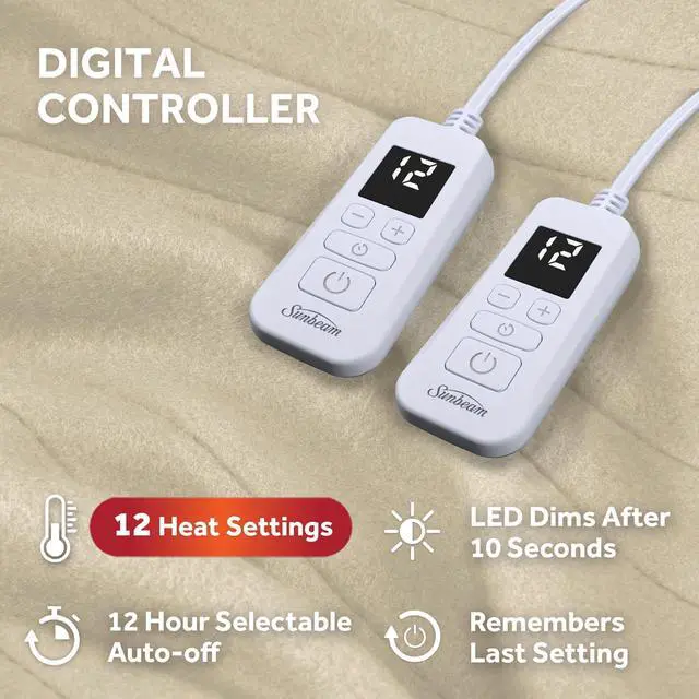 Sunbeam Royal Ultra Fleece Heated Electric Blanket King Size, 90" x 100", 12 Heat Settings, 12-Hour Auto Shut-Off, Machine Washable, Pebble Beige