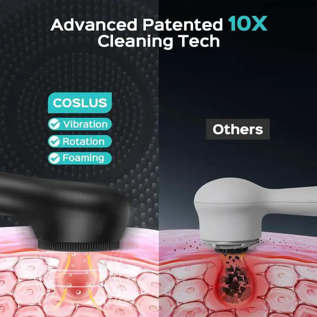 The vibration and dual rotation modes of the silicone face scrubber can clean the skin more deeply, and effectively erase dirt and oil deep in the pores. The facial cleansing brush provides up to 10 times the cleaning effect