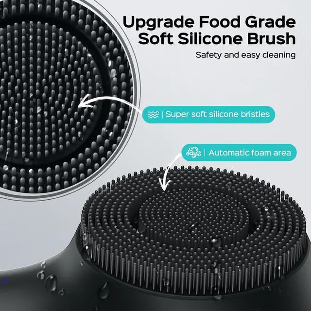 The facial cleansing brush uses an upgraded food-grade soft silicone brush head, which is gentle and non-irritating, and is also very suitable for sensitive skin