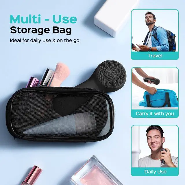 This face brush with IPX7 waterproof can be used for up to 45 days after a 2.5-hour charge. It also comes with a storage bag for easy storage and carrying, which is very suitable for home and travel use