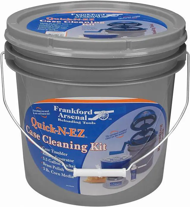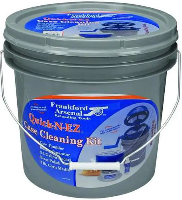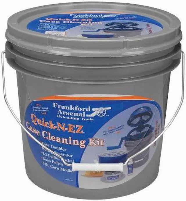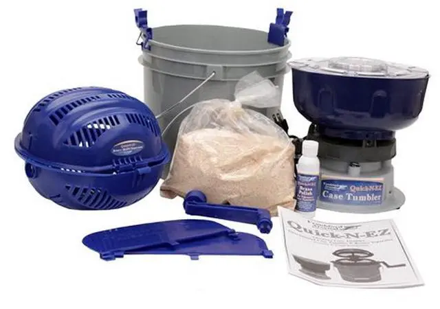 A great kit for any reloader! This very special package includes a Quick-N-EZ Case Tumbler, a Quick-N-EZ Rotary Media Separator, 4 oz Brass Polish, 3 lbs of ground Corn Cob Media and a Plastic Bucket for storing media between uses.