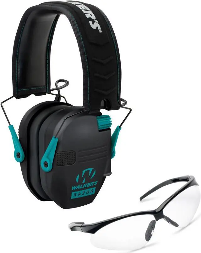For over 25 years Walker’s has developed innovative solutions for hearing protection and enhancement. This exclusive bundle from Lifestyle by Focus includes Walker’s Razor Slim Electronic Muff and Walker's Crosshair Sport Shooting Glasses. Walker’s Razor Slim Electronic Muff (Black/Teal) Protect your hearing from loud noise with the Walker’s Razor Slim Electronic Muff. Delivering an impressive Noise Reduction Rating (NRR) of 23 dB, this muff is sure to protect your hearing, without interfering. It features comfort fit headband with metal wire frame for all-day shooting, with a slim and compact folding design that takes up less space in your bag. The Razor Slim Electronic Muff operates on two AAA batteries (included). Ergonomic Design This muff features two omnidirectional microphones to assure that you don't miss anything and get crisp clear audio. It is engineered with ultra-low profile ear cups with rubberized coating. Equipped with full dynamic range HD speakers for clear balanced sound, it also comes with an audio input jack. Sound Quality The Razor Slim Muff features sound dampening composite housing for providing smoother and suppressed sound quality. It is frequency tuned for natural sound clarity and also features sound activated compression, which will start after 0.02-second reaction time. Walker's Crosshair Sport Shooting Glasses (Clear) Walker's Crosshair Sport Shooting Glasses are specifically designed to provide maximum eye protection for sports shooting. High poly-carbonate impact lenses exceed ANSI Z87.1-2010 high impact safety requirements and provide 99 percent ultraviolet protection.