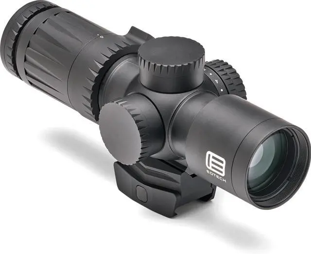 The super short Vudu 3-9x32 rifle scope might just be the perfect optic. The housing is constructed of aircraft-grade aluminum to be compact, lightweight and incredibly durable. This second focal plane design comes in at 6.8 and is fog, water, and shock resistant. The turrets offer ¼ MOA adjustments and are both capped for protection. A rotary dial provides an illuminated reticle with 10 brightness settings and the CR2032 battery provides roughly 300 hours of operation. The unique design provides an integrated base that is also compatible with any aftermarket mini-ACOG mounts.