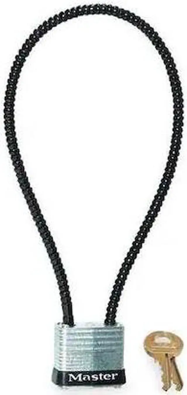 Padlock, Shackle Dia. 7/32 in, Shackle Height 14 in, Shackle Material Steel, Body Height 1 3/64 in, Body Width 1 1/8 in, Body Thickness 1/16 in, Body Material Steel, Number of Bumpers 1, Number of Pins 4 Pin, Key Type Alike, Opens with Key No. P105, Body Color Black/Silver, Weather Resistant No, High Security No, Interchangeable Core No, Non Removable Key Yes, Rekeyable No, Shackle Type Flexible Shackle. This item has been restricted from sale in the following state (s): []