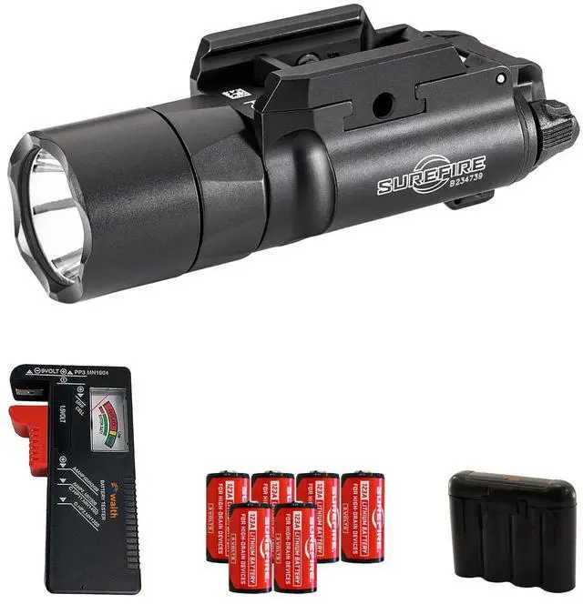 • Bundle Includes: 1 x SureFire X300T-B Turbo LED Tactical Light (Thumbscrew Rail Mount, Black), 6 x CR123A Batteries, 1 x Waith Battery Tester Checker, 1 x Waith CR123A Black Battery Holder Storage Cases