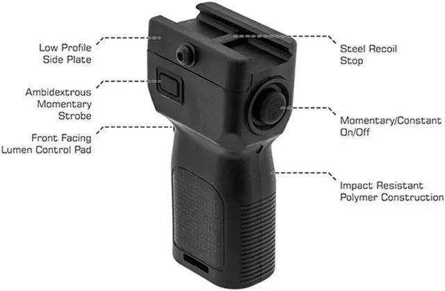 Leapers UTG Polymer Grip Light, Ambi. Controls, Momentary/Constant 400 Lumen Main Power and Momentary Only Strobe with Constant On Scalable from 400 to 20 Lumen. IPX7 Waterproof Rated. Features a 3 Hour Runtime, Low Profile Picatinny Base with Squared Recoil Stop, and Constructed from Impact Resistant Polymer