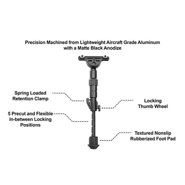 • ENHANCED DURABILITY - Constructed from high-quality aluminum, this bipod withstands rigorous use, ensuring long-lasting performance in various shooting conditions.
