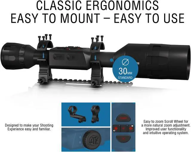 • - Classic ergonomic design, user-friendly interface, and a wide field of view. Easily mountable on virtually any platform with 30 mm standard mount rings.