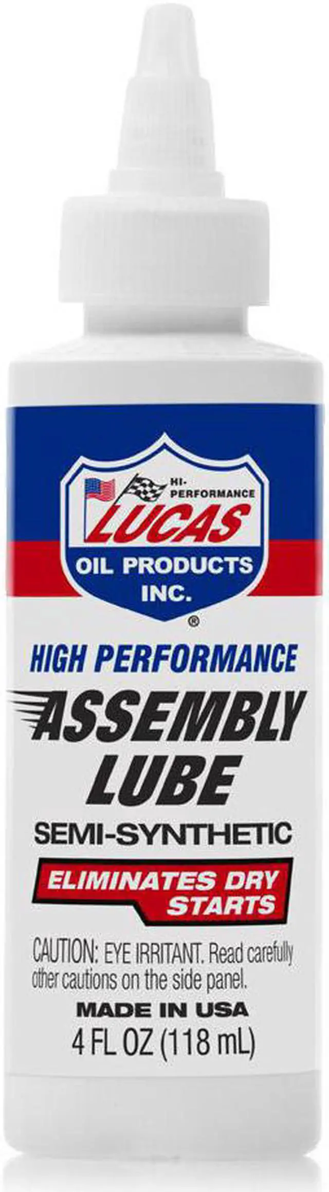 LUCAS OIL 10152 LUCAS OIL 10152 ASSEMBLY LUBE 4 OUNCELUCAS OIL 10152 Assembly Lube 4 Ounce LUCAS OIL 10152Lucas High Performance Assembly Lube is designed for mechanics and technicians to pre lube bearings, cams, lifters and valve train. The Semi-Synthetic formula contains ZINC, MOLY and other high pressure additives which offer maximum protection during engine break-in. Super slick and easy to use, Lucas High Performance Assembly Lube will eliminate dry starts and prevent seizing galling and scuffing.Perfect For Engine BuildingEliminates Dry StartsContaines Batteries: NoContaines Aerosol: NoContaines Chemical: YesCountry of Origin: United States - US
