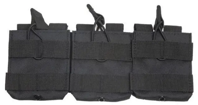 The AR10/ M1A/ FAL triple magazine pouch is able to carry three. 308/ 7.62X 51 type box magazines. This magazine pouch features adjustable bungee cords for securing the magazines in the pouch. The rear of the pouch features six MOLLE compatible PALS straps with metal thumb snaps allowing the user to attach the pouch to any MOLLE compatible gear.