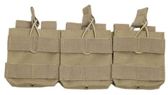 The AR10/ M1A/ FAL triple magazine pouch is able to carry three. 308/ 7.62X 51 type box magazines. This magazine pouch features adjustable bungee cords for securing the magazines in the pouch. The rear of the pouch features six MOLLE compatible PALS straps with metal thumb snaps allowing the user to attach the pouch to any MOLLE compatible gear.