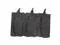 The triple AR and a triple pistol magazine pouch is designed to hold three AR type magazines and three semi auto pistol magazines. The magazine pouch features an adjustable bungee cords with a pull tabs for the rifle magazines and an adjustable hook and loop magazine flaps for the pistol magazines to secure each of the magazines in the pouch. The rear of the pouch features PALS straps with metal button snaps for mounting the magazine pouch to any MOLLE compatible gear.