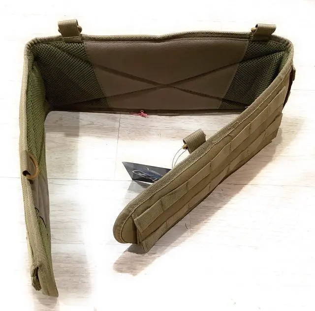 Large padded Battle Belt with PAL webbing for MOLLE compatible gear, ergonomically shaped for comfort and weight distribution, with mesh lining for breathability, side panels with hook and loop fasteners for the ease of configuring and adjusting your belt and shooting gear, and with D-rings for attaching optional harnesses/ suspenders. Inner belt (web, duty, war belt) not included.