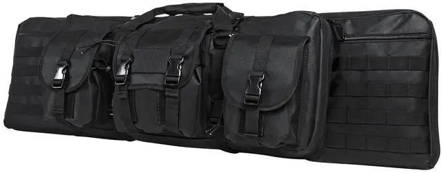 Double carbine case allows 2 carbines to be transported with a center divider to prevent weapons from contacting each other. Additional storage pouches to store mags or other items. Extra Molle for additional pouches or gear.