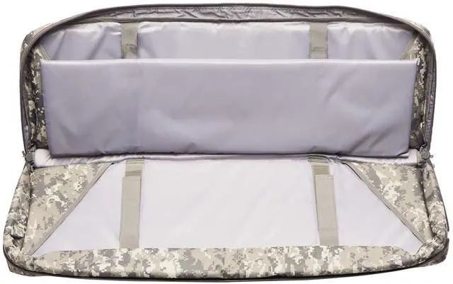 • 55LX11"H padded main compartment to secure and hold two Rifles, Carbines, or Shotguns with an overall length of 45" or less. Padded center divider to protect the firearms from each other. Each compartment has two diagonal side pocked to help secure each end of the firearm and two hook and loop straps to secure each firearm inside the case.
