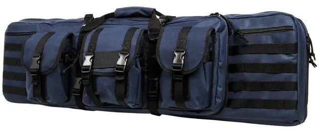 Double carbine case allows 2 carbines to be transported with a center divider to prevent weapons from contacting each other. Additional storage pouches to store mags or other items. Extra Molle for additional pouches or gear.