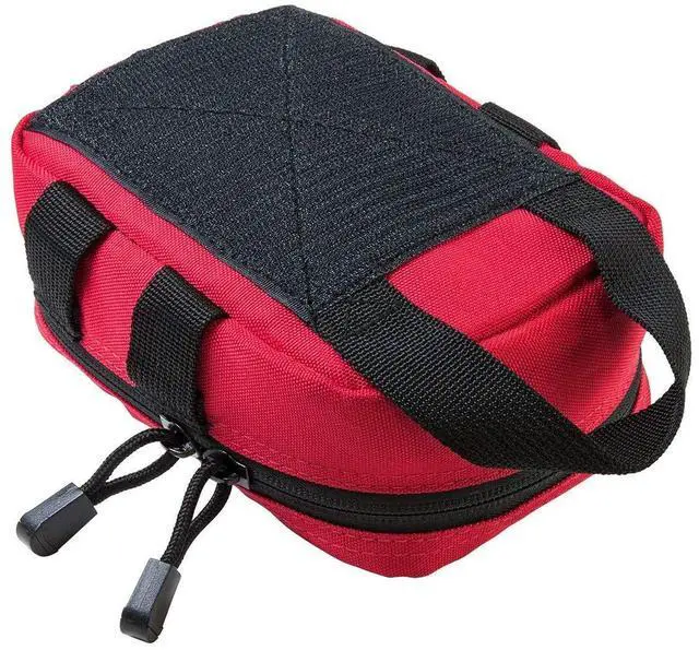 This Small MOLLE EMT Pouch has a double zippered main compartment that opens up flat into two separate compartments for easy access to your first aid supplies. Internally there is a pocket, several elastic straps, and four loops to organize your supplies. The small EMT pouch has a detachable MOLLE panel that can attach to any gear with PALs webbing. The small EMT pouch is attached to the MOLLE panel via hook and loop fastener and a 1 strap with a quick connect buckle.
