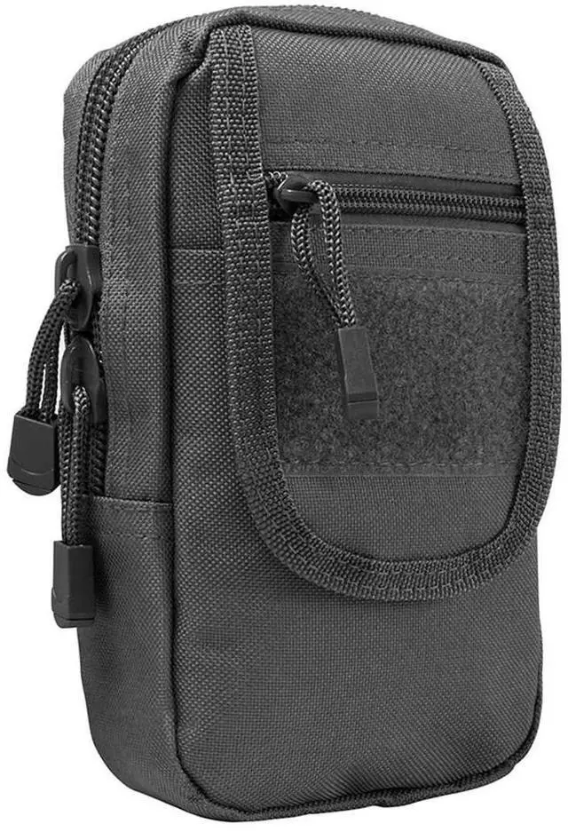 MOLLE Utility Pouch mounts directly onto tactical vests, plate carriers, or leg platforms with MOLLE webbing. This pouch features one large zippered compartment, one small zippered compartment and a small open pouch which is secured by the main flap. This pouch is perfect for EDC items, first aid pouch/EMT/IFAK, it will hold the largest smart phones, or a concealed carry pouch.