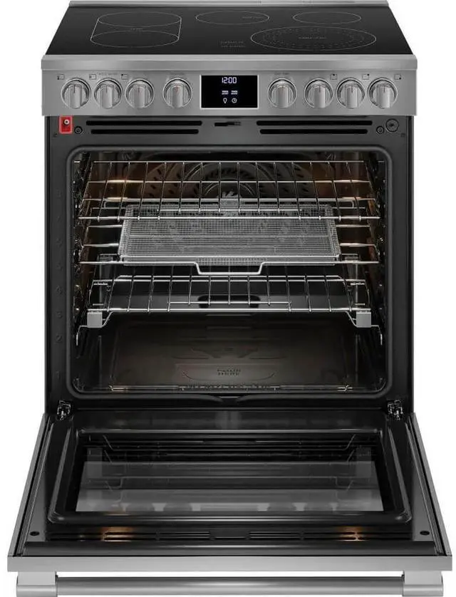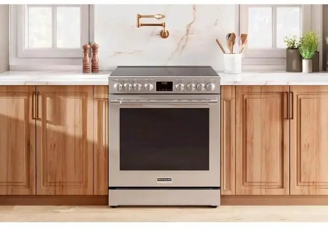 The Frigidaire PCFE3080AF features a Total Convection System, offering versatile cooking modes such as Air Fry, No Preheat, Slow Cook, Convection Bake, Steam Bake, Convection Roast, and Steam Roast, allowing you to prepare a wide range of dishes with precision.
