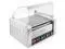 Dual-temperature controls on the front panel of the hot dog maker allows for continuous cooking on the back rollers, while the front rollers keep the cooked items hot and ready to serve. The bun warming drawer features its own temperature control, also located on the front panel.