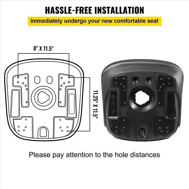 VEVOR Universal Tractor Seat Replacement 2 Pack, Compact High Back Mower Seat Pair, Black Vinyl Forklift Seat, Central Drain Hole Skid Steer Seat with Mounting Bolt PatternsPremium Vinyl MaterialPractical Soft CushionConvenient Drain HoleConsiderate DesignEasy InstallmentVersatile UsageBackrest size: 20" / 50.8 cm,Color: Black,Model: VV-TS-DHBL,Material: Vinyl,Weight: 26.5 lbs / 12 kg,Mounting Patterns: 8"x 11.5" & 11.25" x 11.5" / 203 x 292 mm & 286 x 292 mm