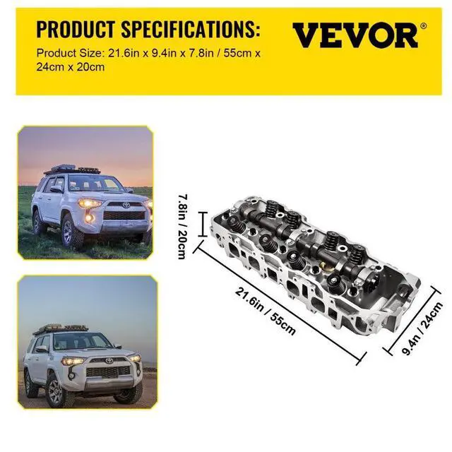 • VEVOR Complete Cylinder Head for 85-95 22R 22RE 22RE 2.4L SOHC Pickup 4Runner SpeedComplete Cylinder Head KitHighly CompatibleIndustrial-strength Cast IronPowerful EfficientPrecisely EngineeredTrusted WorldwideCondition: Brand New,Installation: Direct Replacement,Interchange Part Number: CHTO000, 20-T-22R,Gross Weight: 13.18 kg/ 29 lbs,Product Type: Cylinder Head Assembly,Fitment: 1985-1995 4Runner, 1995 Celica, 1985-1995 Helix Pickup,Material: Steel,Product Dimension (LxWxH): 21.6x9.4x7.8 in/ 55x24x20 cm,Placement On Vehicle: Front