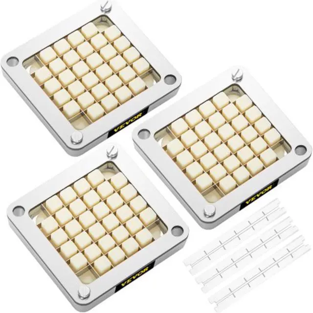Model NO: FKTHQC312INCHY5LJV0Brand: VEVORVEVOR Replacement Chopper Blade, 1/2 inch, 3 PCS French Fry Blade Assembly with 6 Extra Knives, Stainless Steel Dicer Parts and Push Block for Cutting Potatoes Carrots Onions Cucumbers Mushrooms