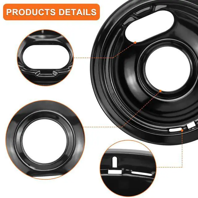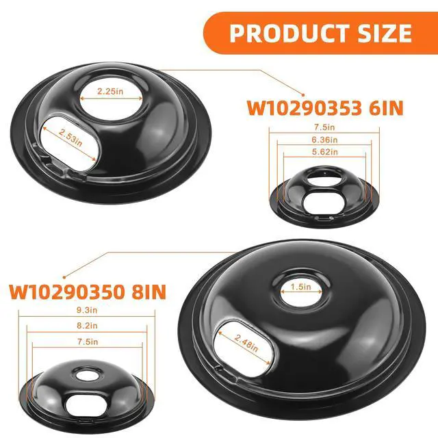 | Model Name | W10290353(6")W10290350(8")stove drip pans is made of premium quality porcelain with chrome finish.Ensure long-lasting and effective performance.Electric stove burner drip pans are easy to clean.It make sure nothing drips onto the flame, keeping safe.And prevent cookware from rocking on the stove.If your drip pans are getting stained,dirty,or rusted,it can solve,and keeping your stove looking new and fresh |
