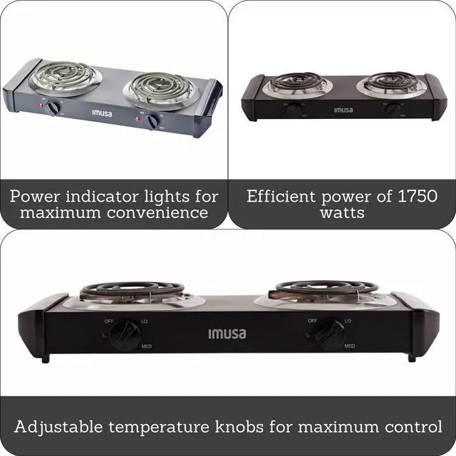 The IMUSA burners feature a variation of unique and essential features. This variations include colors, size, and exterior construction. Works Greatfor college students in dorms, young adults living on their own, and people with small spaces.