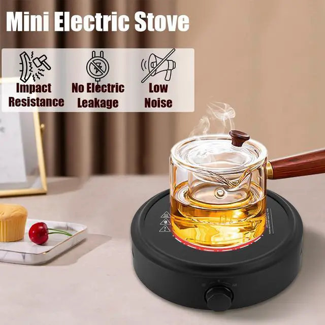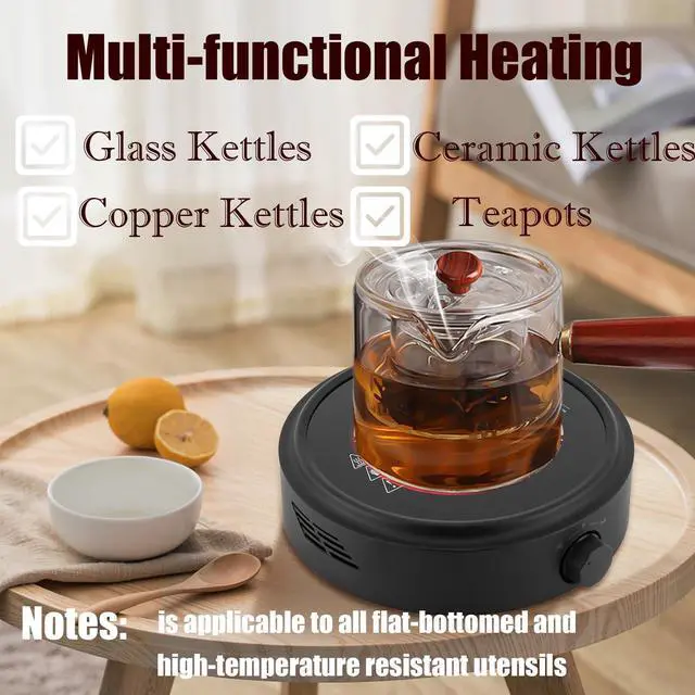 High-Quality Construction: Crafted from PC and crystal plate, this electric mini stove boasts high temperature and impact resistance, explosion-proof qualities, and is free from electrical leakage. It's compatible with all flat-bottomed, high-temperature resistant utensils under 15cm/5.91in in diameter, including teapots made of copper, cast iron, ceramic, silver, and glass