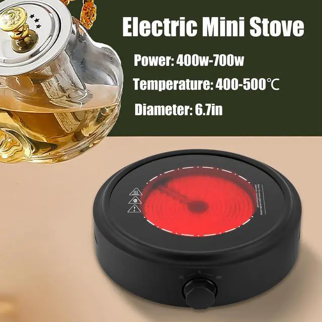 Electric Mini Stove Portable Hot Plate, 110V 700W Electric Heater with Adjustable Power for Teapot/Kettles/Ceramic/Glass Kettle, Electric Stove for Boiling Water, Making Tea/Coffee, Single Burner