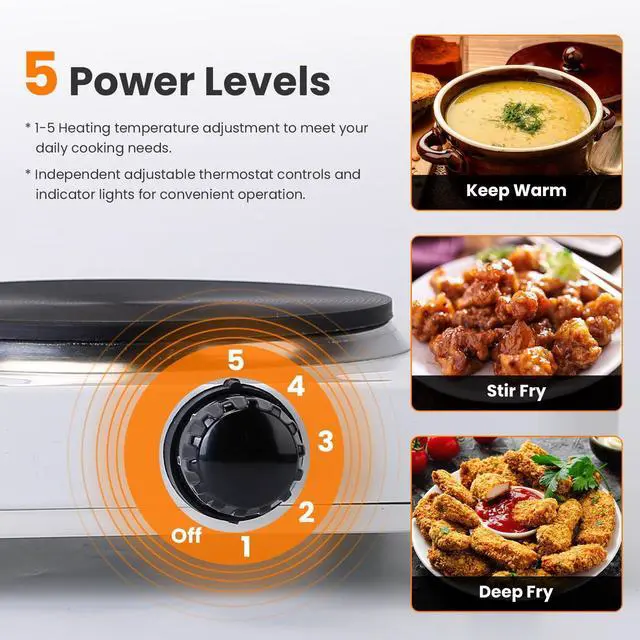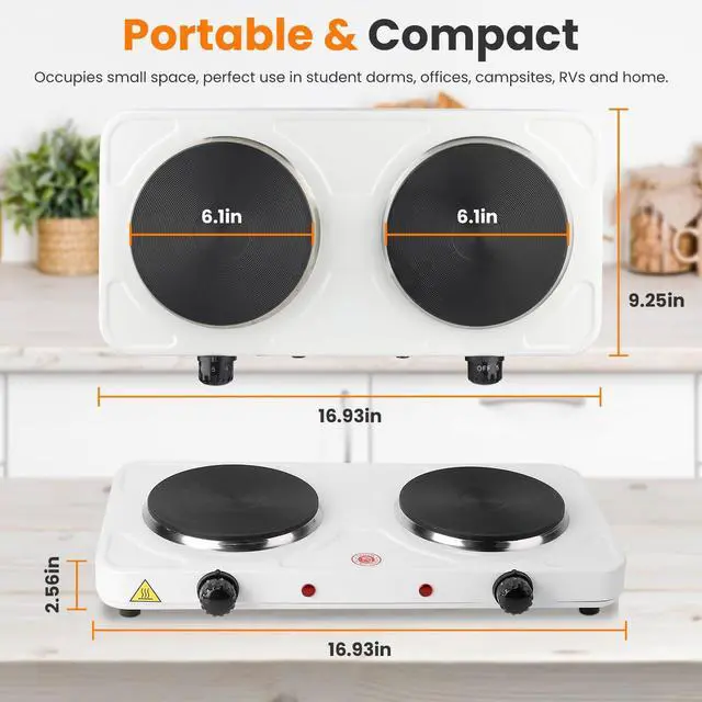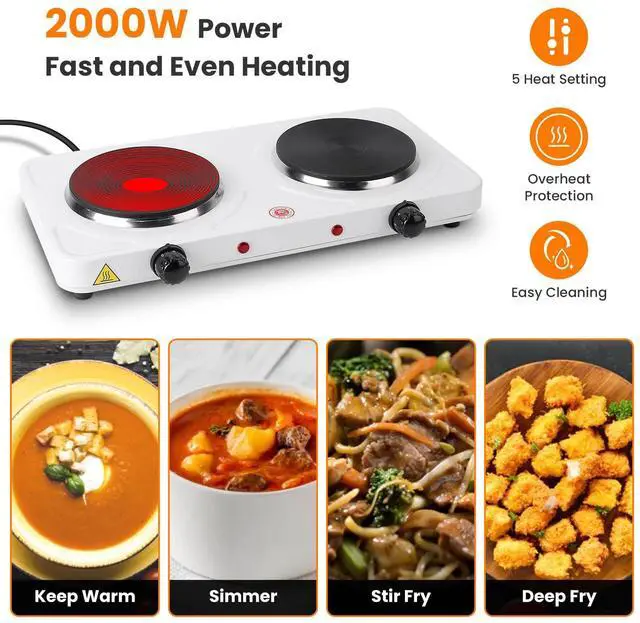 Our Portable Double Hot Plate can save your space and give you mighty 2000W capacity to ensure maximum heat for quick heating with 5 temperature gears.