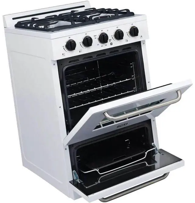 Get big cooking power even in small spaces with this 24 propane range that comes with all the features you need for your off-grid kitchen. The sleek design fits seamlessly with any style, plus the cast-iron grates and sealed burners ensure cooking and cleanup are always easy.
